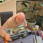 In het vorige Repair café in de Hagedoorn zijn weer talloze apparaten hersteld. Een zelfgemaakte houten kerstboom met lampjes en kleurige effecten had een kapot bedieningspaneeltje. Alles geprobeerd, maar op 28 november komt er een alternatieve oplossing. Het was te merken dat de bomen alom hun bladeren hadden losgelaten. Almelo ligt er vol mee en ook de tuintjes van de particulieren worden bestookt met bladblazers. Als ze het doen. Er kwamen er maar liefst 3 voorbij voor reparatie. Een stoomstrijkijzer stoomt weer nadat er kalk was verwijderd. Ook sneuvelen stofzuigers doordat de kabels helemaal wordt uitgetrokken en van de haspel wordt gerukt. Dat is een flinke klus om te herstellen. Er waren maar liefst 4 stofzuigers.