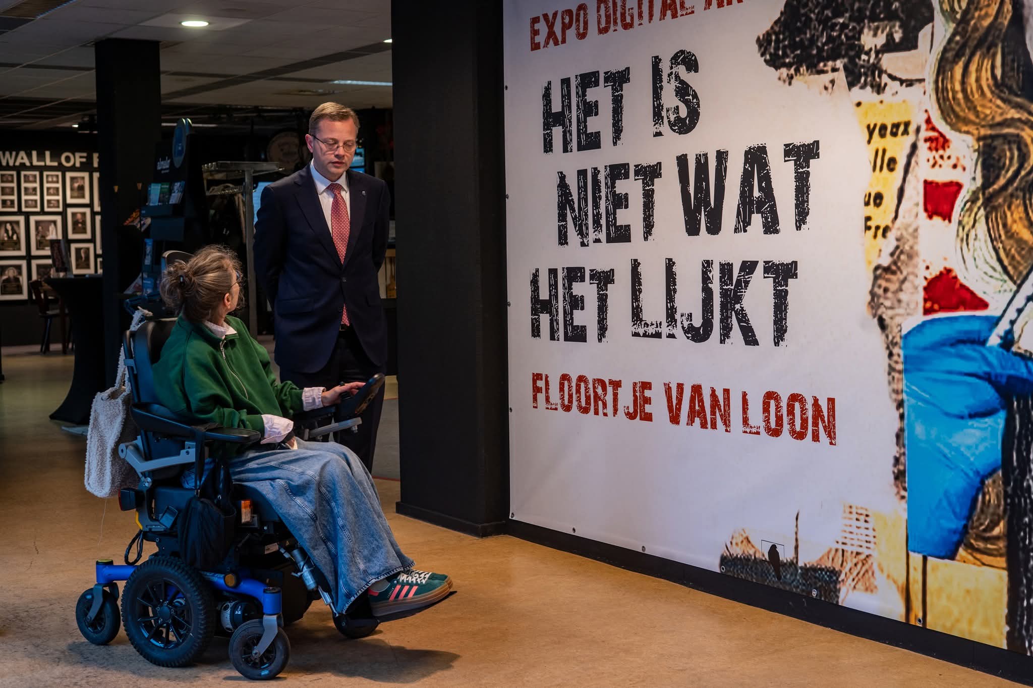 De burgemeester nam uitgebreid de tijd om de expositie “Het is niet wat het lijkt” te bekijken van de Almelose kunstenares Floortje van Loon. Samen liepen zij langs de werken, waarbij ruimte was voor het verhaal achter de kunst. Volgens de organisatie past die persoonlijke aandacht bij waar het huis voor staat: oog voor makers en hun verhalen.