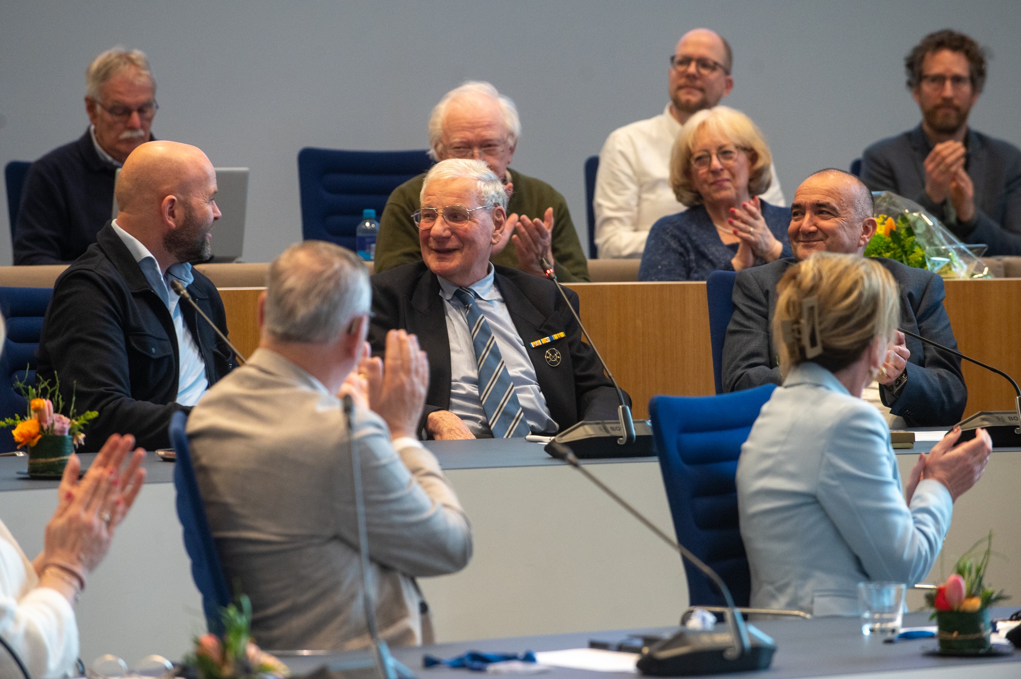 Een bijzonder moment was het afscheid van Gijs Stork, die maar liefst 44 jaar in de raad zat — elf periodes, „ruim 16.000 dagen”. Bescheiden, empathisch en altijd midden in de stad. „U was kritisch waar het moest en gepassioneerd waar het kon: uw nalatenschap is blijvend.”