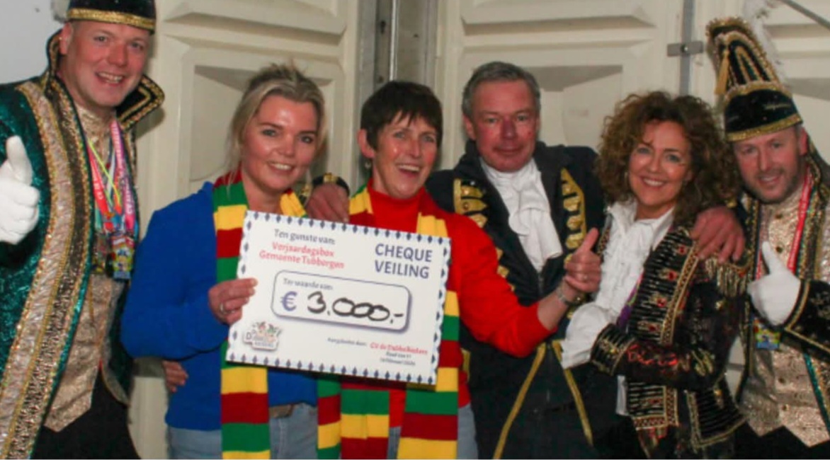 Carnavalsvereniging De Dubbelkiekers uit Harbrinkhoek-Mariaparochie heeft €3.000 opgehaald voor de Verjaarsdagbox Tubbergen. Het geld komt uit de veiling van het bord van café/partycentrum De Spar.