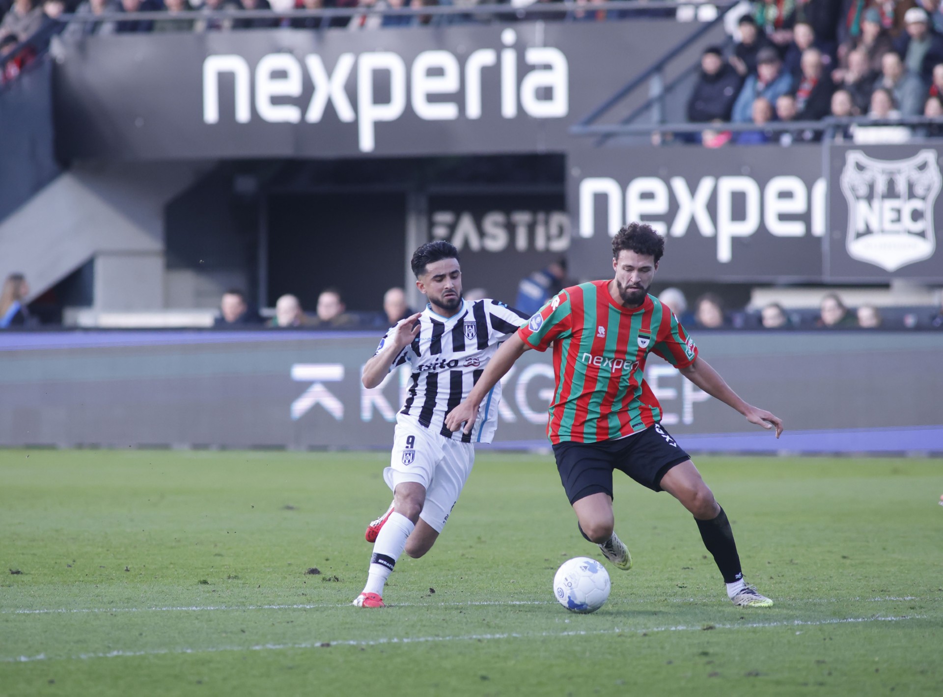 De tweede helft begon zonder wissels en met een publiek dat er nog eens goed voor ging zitten. Heracles zette hoog druk, maar NEC kreeg de eerste kans: Pasveer pakte een schot in de 46e minuut klemvast. Een voorzet van Lebreton scheerde langs de paal, terwijl Heracles via Zeefuik nét geen gevaar kon stichten. NEC werd gaandeweg dreigender en Pasveer moest opnieuw redden op een poging van Chery.