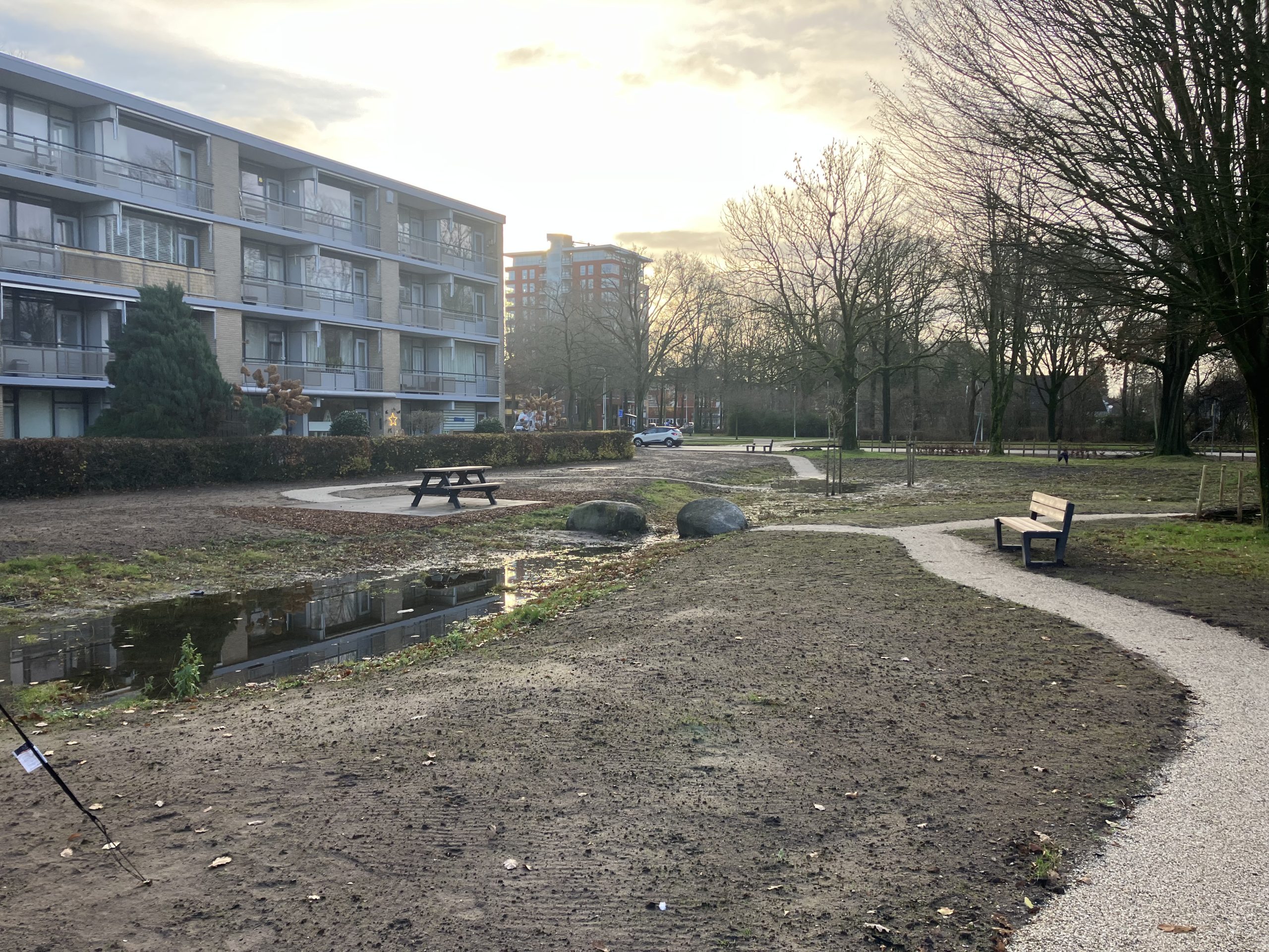 Ondanks de regenval van de laatste tijd worden de contouren van de wadi’s bij de flats aan de Drakensteyn (Schelfhorst) steeds meer zichtbaar.