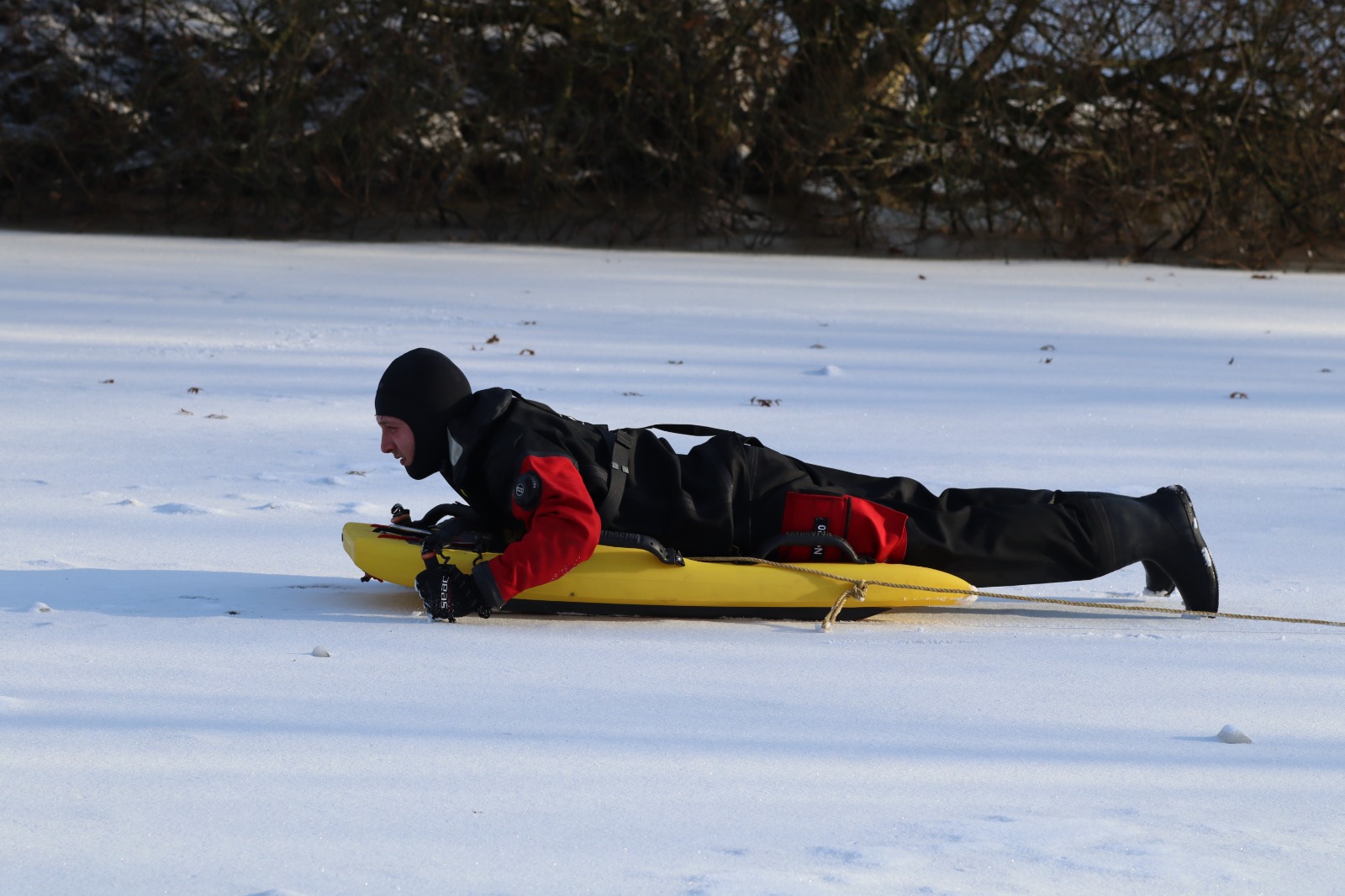 Ter plaatse bleek de meeuw niet vast te zitten, maar het dier kon nog wel vliegen. Omdat het dier zich op en rond het water bevond, werd in eerste instantie een hoogwerker ingezet. Mogelijk kon via een ladder over het ijs bij de meeuw worden gekomen. Ook een tankautospuit kwam ter plaatse om te assisteren.