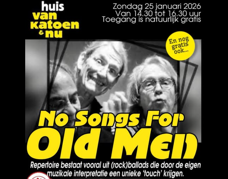 In Het Huis van Katoen & Nu gaat op zondag 25 januari 2026 de teletijdmachine aan. Tussen 14.30 en 16.30 uur neemt het trio No Songs for Old Men bezoekers mee naar de jaren ’60 en ’70 — een periode vol iconische muziek, protestliederen en tijdloze melodieën. In de sfeervolle Cotton Club klinkt het alsof Bob Dylan zélf even binnenwandelt.