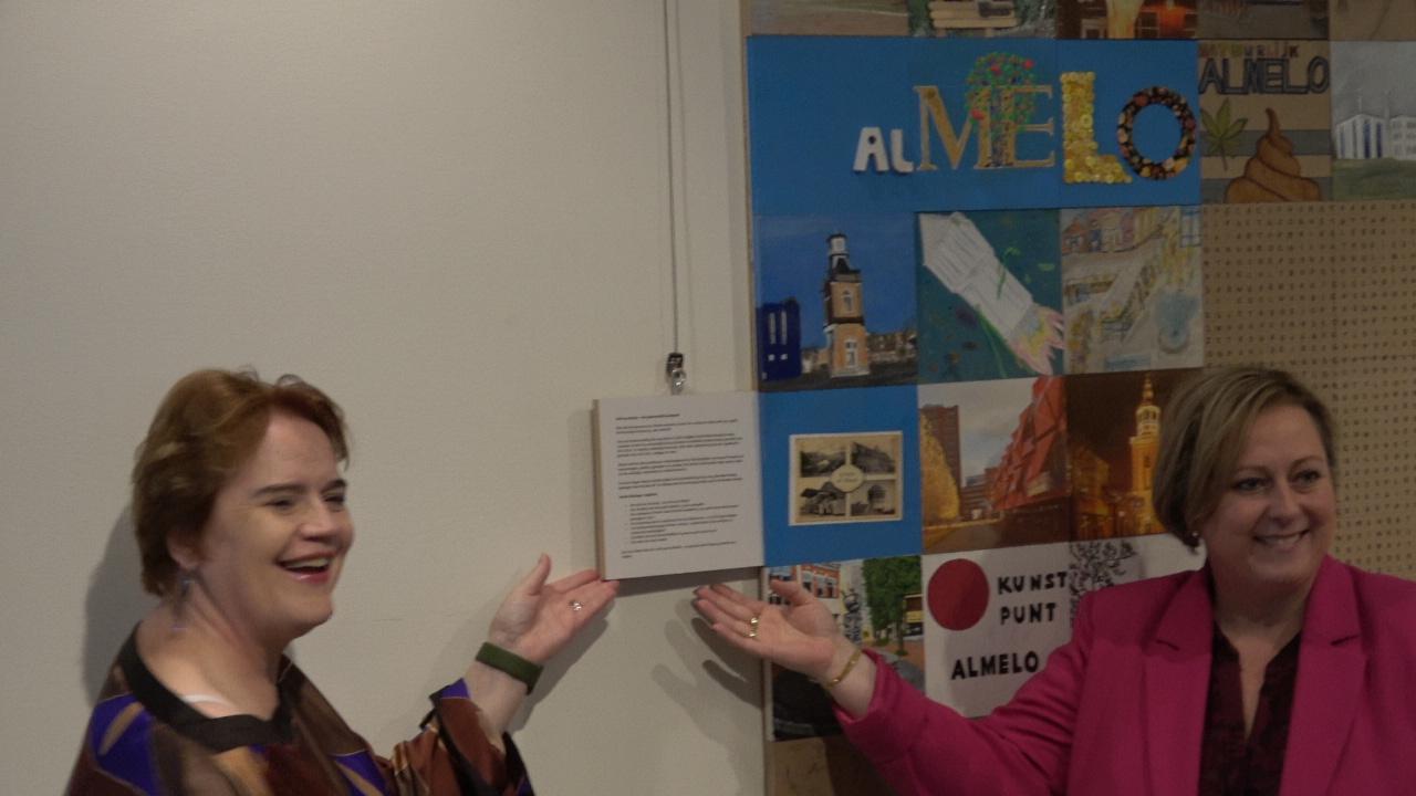 Vorig jaar opende burgemeester Korteland de tentoonstelling in het Stedelijk Museum van Almelo. De inwoners van Almelo werden toen door directeur Sigrid Ivo uitgenodigd hun visie, zicht, op Almelo uit te beelden op een houten paneeltje. Deze paneeltjes tezamen vormden het tableau dat dinsdag in gebruik werd genomen door wethouder Margreet Overmeen-Bakhuis die het laatste tekstbordje met uitleg in ontvangst nam.