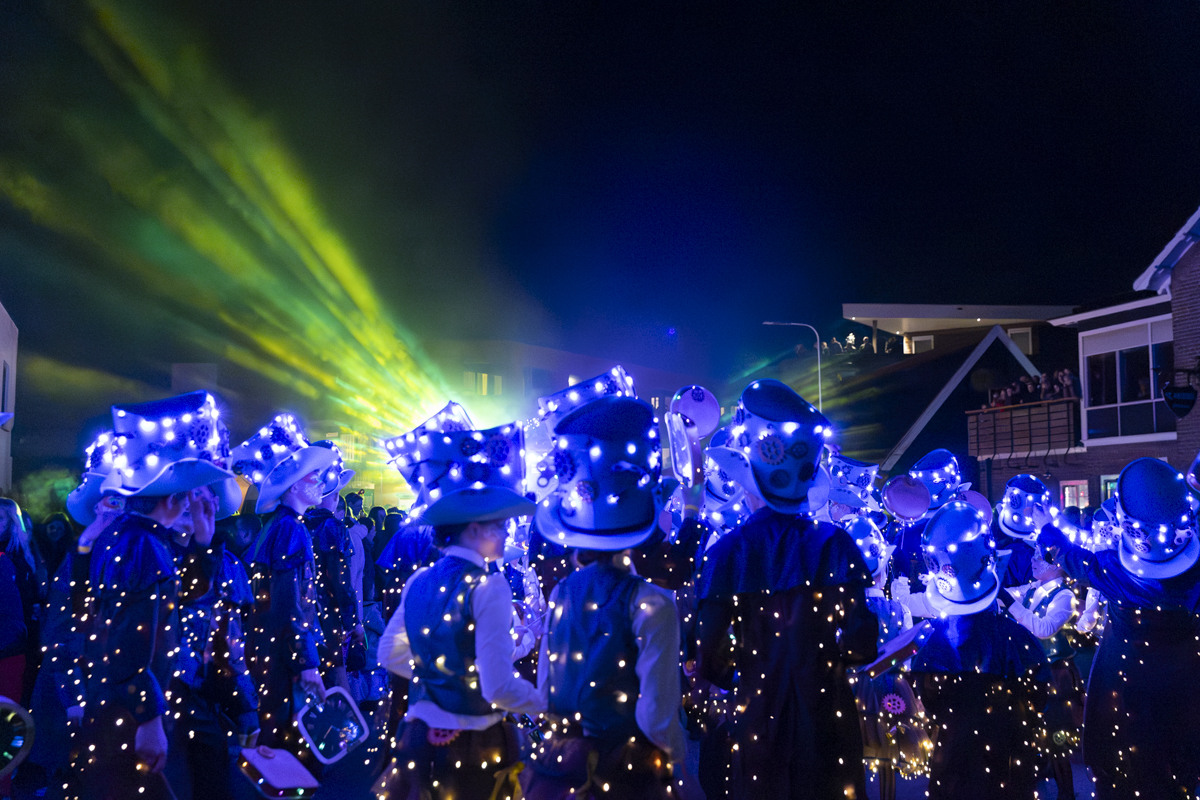 Straatverlichting uit, lichtstoet aan