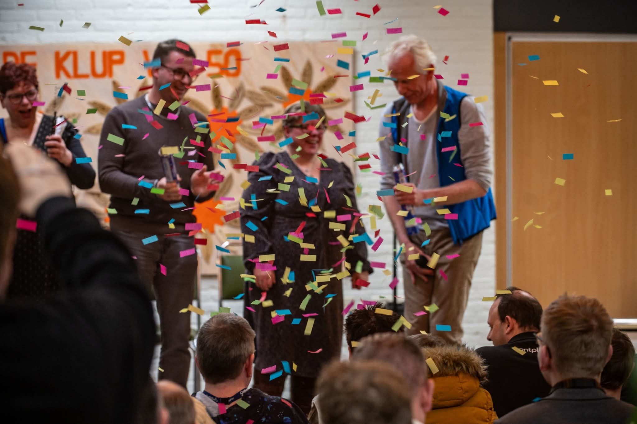 Het verkiezingsfeest begon meteen goed. Met een knal, een regen van serpentines en een zaal die direct begon mee te zingen, was de toon gezet. Dit was geen gewone debatavond, maar een feestelijke ontmoeting. De zaal zat vol met cliënten, medewerkers van Ontplooj en vertegenwoordigers van bijna alle politieke partijen.
